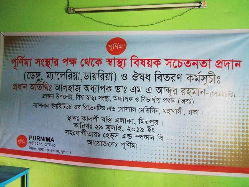 Purnima arranged an awareness program on dengu and Melaria, free medicine distribution and free doctor check-up for poor and distressed people.